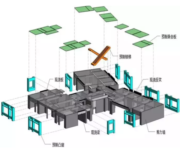 预制楼梯预留预埋栏杆扶手配套埋件、预制防滑条建筑功能;预制阳台预留预埋栏杆扶手配套埋件、预埋板底线盒、预留防水套管、立管、地漏等内容。