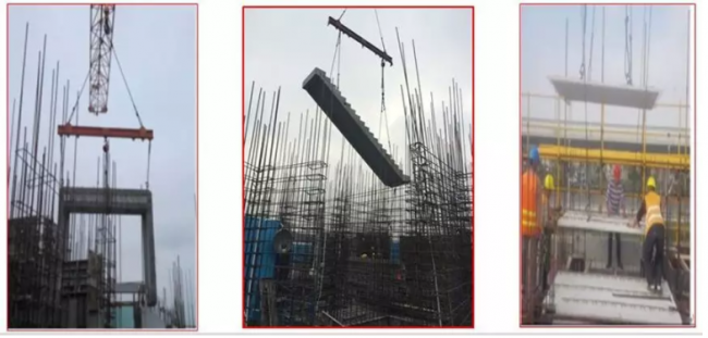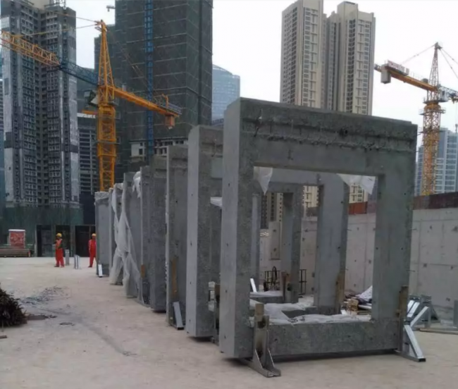 PC构件在工厂里加工,又快又环保,只需塔吊轻轻一吊就成形了。