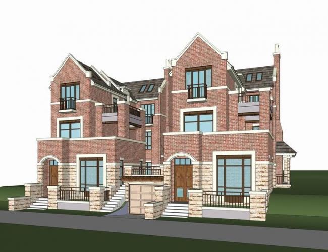 Sketchup别墅模型|双拼别墅,英式风格,古典风格