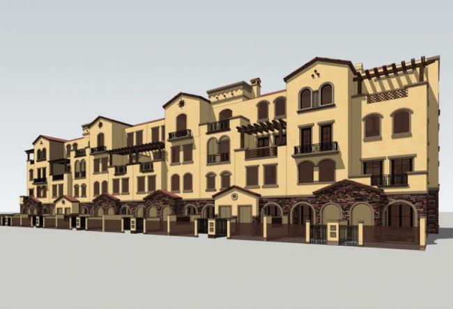 Sketchup别墅模型|联排别墅,古典风格,西班牙风格