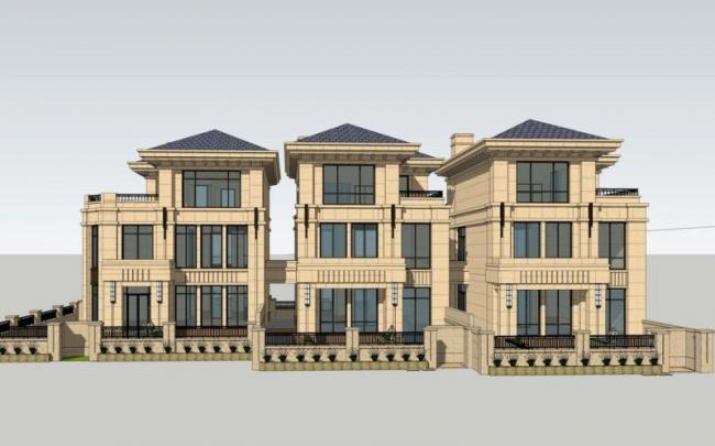 Sketchup别墅模型|叠拼别墅,法式风格,古典风格