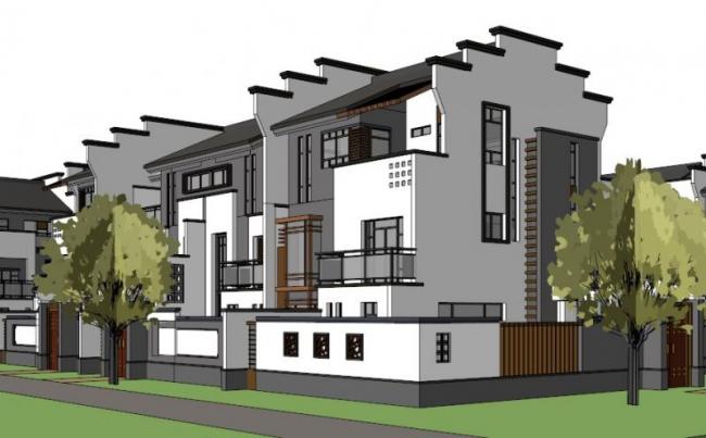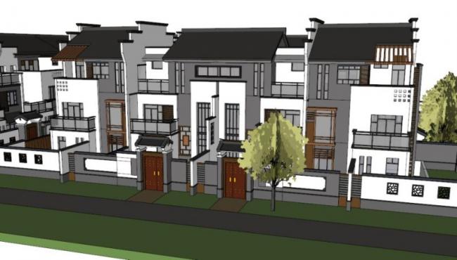 资料名字:Sketchup别墅模型|徽派合院别墅