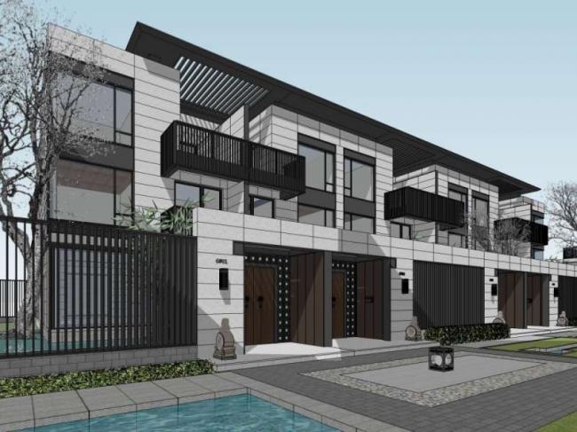 资料名字:Sketchup别墅模型|联排别墅,现代中式风格