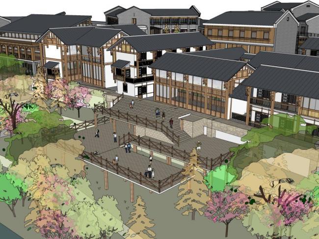 资料名字:Sketchup商业模型|多层商业街,新中式风格