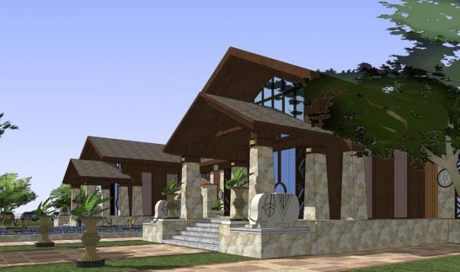 资料名字:Sketchup商业模型|多层售楼处,东南亚风格
