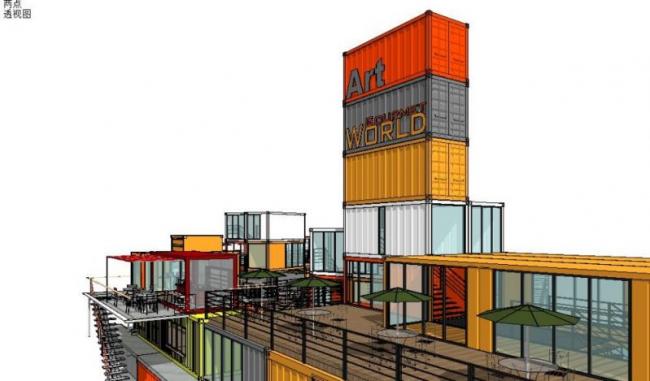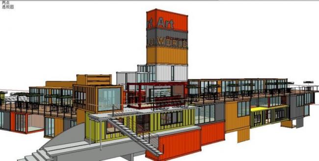 Sketchup商业模型|集装箱,多层商业娱乐休闲设施,现代风格