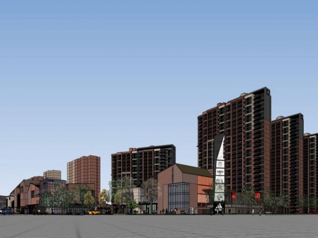Sketchup住宅模型|高层住宅,底层商业,现代风格