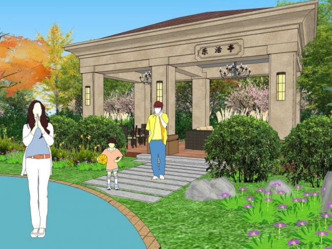 Sketchup景观模型|小区景观,住宅景观,古典风格