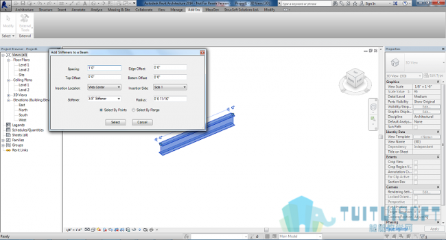 通过选择单个点或两点之间的距离,在一个或多个工字钢上添加腹板加劲肋。用户可以定义间距、偏移、插入位置、插入侧和加强筋尺寸。