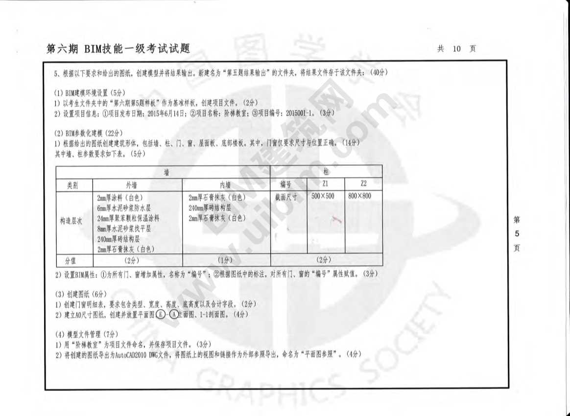 资料名字:第六期全国BIM技能等级考试一级建筑(全专业)试卷真题下载 如何下载:用户在线自助下载,快速获得资料; 资料说明:该资料经过小编严格测试,确认没有错误后,面向广大用户提供使用; 注意事项: 1、如果资源出现不能下载,请及时联系我们,我们将尽力为你解决。 2、本站资源来源于互联网,如有侵犯您的版权,请联系我们!我们会在24小时内删除。 3、联系邮箱 | service@bimii.com 资料标签:BIM一级考试BIM考试真题全国BIM技能等级考试
