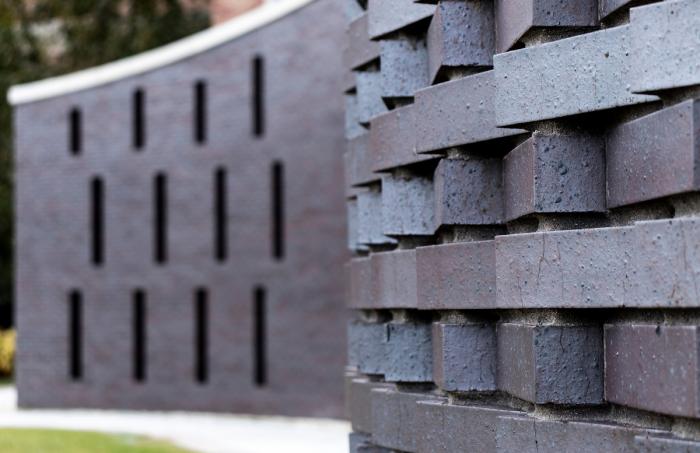 这些特殊的砖石处理方式,包括了顺时针旋转石块,以将传统的粘连叠垒转变为螺旋相连的处理手法;以及在转角处重新将螺旋相连的手法调整为叠垒粘连。正是基于这样的一种顺时针的旋转手法,教堂的角落空间都呈现出一种特殊的“编织感”。同时,建筑师选择了带有铁黑色斑点的砖石,以在将新建的教堂和现有的医院外表色彩区分开来的同时,利用这种材质表面的特殊反光肌理,借助建筑表面的起伏感,来展现富有活力的光感。