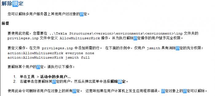 我已经完全把这些构件解锁了,包括上面的焊缝、切割、螺栓等,还是没有办法。(旁边的钢柱钢梁都没有问题,仅仅是有一部分构件存在这个问题)因为这种情况我采取的以下几个办法,均已尝试:1、模型校核,现在模型已经校核过2、显示此模型中的所有对象,如焊缝、螺栓、切割、砼等,并且全部解锁3、查看帮助中关于锁定的解释,并按照下图方法尝试: