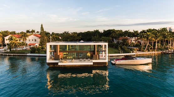 游艇别墅可以用柱子完全露出水面。