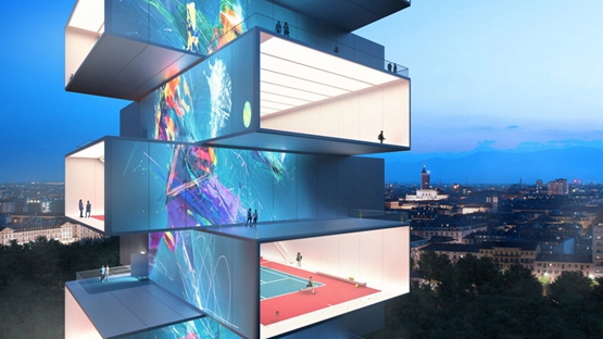 意大利卡罗-拉蒂工作室(Carlo Ratti Associati)和建筑师伊塔洛-罗塔(Italo Rota)设计了一个名为“游戏刮板”(Playscraper)的概念塔楼,这是一个临时建筑,由八个网球场相互层叠组成。
