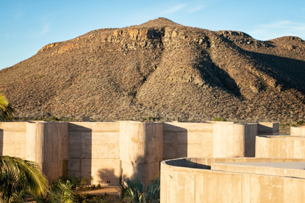 米色混凝土与周围的地形融合在墨西哥海岸的帕拉德罗酒店(Paradero Hotel),由建筑师鲁本-瓦尔德斯(Ruben Valdez)和雅沙尔-耶克塔霍设计。 帕拉德罗酒店位于托多斯-桑托斯(Todos Santos),一个位于巴哈半岛(Baja Peninsula)西南海岸的小镇,占地5.5英亩(2.2公顷)。这个度假村坐落在一片平坦的土地上,周围是家族农场和拉古纳山脉(Sierra de la Laguna Mountains)。离海滩有20分钟的车程。 2017年,建筑师鲁本-瓦尔德斯(Ruben Valdez)和雅沙尔-耶克塔霍创立了耶克塔霍-瓦尔德斯建筑师事务所(Yektajo & Valdez Architects ),在托多斯-桑托斯和瑞士洛桑设有办事处。室内设计由哈伯(B Huber)负责,哈伯是瓜达拉哈拉一家以热情好客著称的工作室。 该建筑由一系列米色混凝土结构组成,与景观融为一体。包含客房的楼体有向外俯冲的墙壁,形成内部走廊和楼梯间。在某些立面上打有三角形的小孔。 耶克塔霍-瓦尔德斯建筑师事务所说:“三角形的形状来自于一个简单的几何形状,可以在战略位置‘穿透’墙壁,”这些建筑围绕着一个低水位的中央花园进行布置,这种布局借鉴了加利福尼亚半岛历史上的建筑风格,也有助于游客感受到与这个场地的联系。耶克塔霍-瓦尔德斯建筑师事务所说:“了解周边自然是项目最重要的元素,物业沿地块周边组织,让每套房和部分公共区域对周围环境有一个通畅的视野,” 这个成人专用酒店拥有35间客房套房。有些提供屋顶露台,有用螺栓固定在墙上的平吊床,称为“星网”。还有一套三层套房,给人一种豪华住宅的感觉。套房可通过蜿蜒穿过花园的小径进入。 建筑师说:“一旦进入室内,人们就会通过精心组织的室内外空间序列重新发现周围的景观,模糊了建筑和环境之间的界限。”房间被设计成一个安静的庇护所。混凝土墙和地板与现代家具搭配,采用泥土色调和材料,如白色雪松。大部分装饰是由墨西哥工匠制作的。度假村提供了几个公共空间,包括一个带新月形甲板的无限泳池。一家现场餐厅提供在明火厨房准备的区域性食物。 该建筑的景观是由墨西哥的波伦公司(Polen)构思的。在这个地方可以找到几十种特有的植物,包括莫哈韦丝兰和红沙马鞭草。波伦公司说:“30%以上的植物是从温室里的种子中生长出来的,其余的则是从当地的温室里购买的。” 微信公众号:xuebim 关注建筑行业BIM发展、研究建筑新技术,汇集建筑前沿信息! ← 微信扫一扫,关注我们+