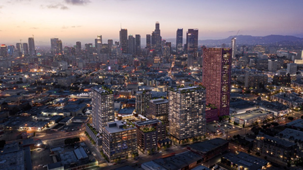 该项目已提交开发申请,将在洛杉矶市中心第四大街和中央大道之间占地7.6英亩的土地上建造10栋建筑。该项目如果获得批准,将于2024年动工。位于丹佛的连续伙伴公司(Continuum Partners)和洛杉矶冷藏公司(Los Angeles Cold Storage)是“第四和中央”项目的开发商。洛杉矶冷藏公司是一家冷冻食品仓库公司,拥有该场地近半个世纪。总部位于洛杉矶的Studio One Eleven建筑工作室一一为这个场地设计了一个混合用途的项目,将在两到42层的高度范围发展。除了1521个住宅单元和一个有68间客房的酒店外,“第四和中央”项目的规划还包括401000平方英尺(37000米)的办公空间和93000平方英尺(8640平方米)的零售和餐厅空间。大卫-阿贾耶为该项目设计了两栋建筑物。这位阿贾耶建筑公司的创始人此前曾为洛杉矶的时尚零售商韦伯斯特设计了一家粉红色混凝土商店,但这将是他在洛杉矶的第一个地面项目。