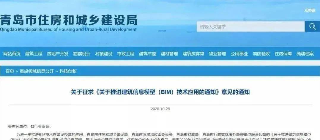 8、青岛四部门关于征求《关于推进BIM技术应用的通知》