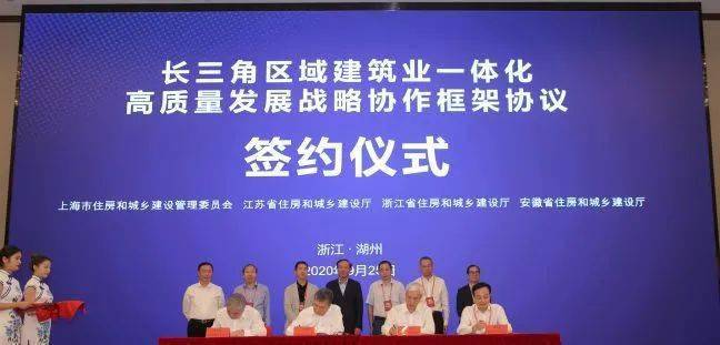 4、上海、浙江、江苏、安徽三省一市举行了《长三角区域建筑业一体化高质量发展战略协作框架协议》签约仪式