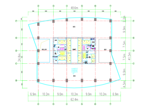 沈阳财富中心超高层项目,位于沈阳市沈河区沈阳金融商贸区,功能为甲级写字楼总使用面积达到了20500m?,总建筑面积约11万㎡。其中地下为停车场(6层),地上为办公楼区域(44层包括两层避难层)。建筑总高度187.1m,结构主要屋顶楼面高为179.9m。见图1、2。