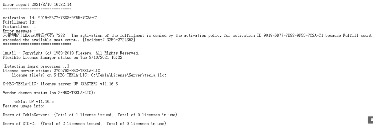 2)当HOST_ID与之前的查看出的物理地址不匹配,则说明许可证是在别的电脑上激活的,这时候需要在其他有可能激活的电脑上一一重复第一步,直至找到物理地址与HOST_ID匹配的电脑,然后进行退还,若不能退还请及时联系Tekla的相关技术人员。