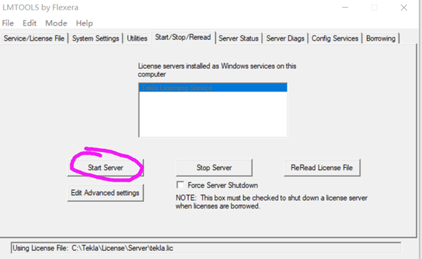 若统计数据显示为不可用时,则需要重启一下服务器,在tekla/license/server文件夹下面找到Lmtools工具,点击star server(或先点击stop server再点start server),若下面栏中显示successful字样则表示许可证服务器启动成功,这样的话就可以在Tekla LicenseAdministrationTool的统计数据上刷新一下,就可以看到许可证能正常使用的状态,此时则许可文件被正常激活且服务器正常工作,软件能正常使用。