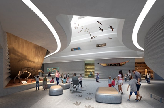 建筑的中心将被雕刻成一个五层的中庭。这将作为一个公共空间,欢迎参观者参观博物馆,并让公众在进入展品前聚集。艺艾德工作室表示:“该建筑流畅的布局将使参观者能够预览不同的展览楼层,并欣赏到通常隐藏在闭门后的收藏空间、物品和标本的幕后景观。”展览设计将由总部位于纽约的特林克工作室(Thinc)负责,包括永久性画廊以及用于改变“多感官”装置的空间。