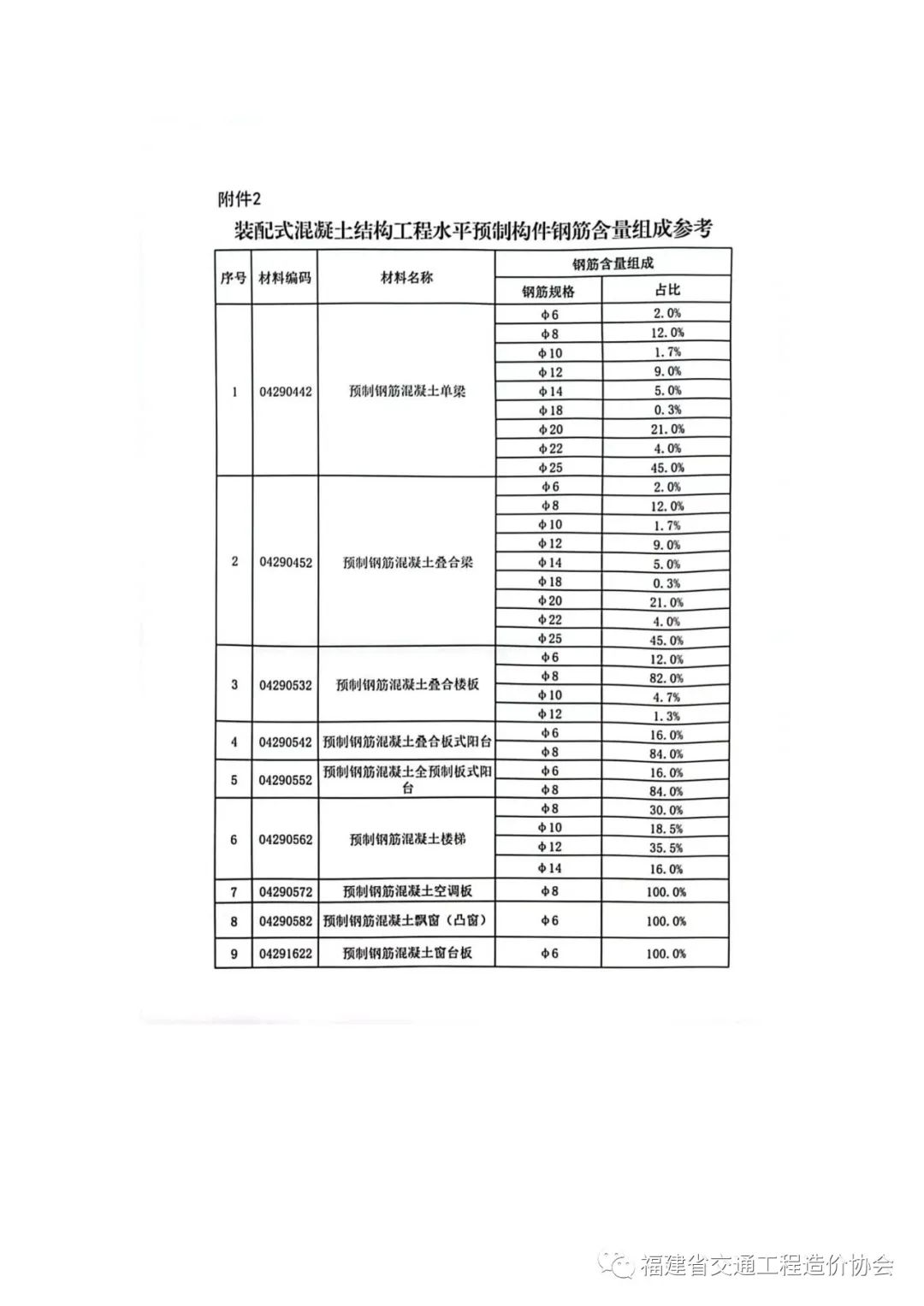 装配式政策|福建关于发布《装配式混凝土结构工程水平预制构件综合价格信息目录》的通知