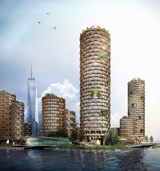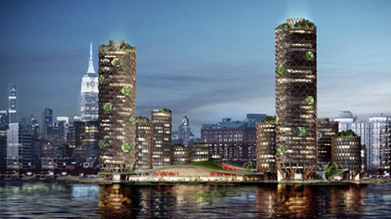 据报道,纽约的DFA建筑工作室为曼哈顿的40号码头设想了一系列的公寓式塔楼,一旦海平面上升,它们也可以保持在水面之上。