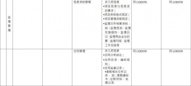 BIM施工模型细度表关于施工监理中监理管理的说明