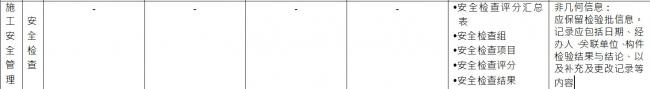 BIM施工模型细度表关于施工安全管理中安全检查的说明