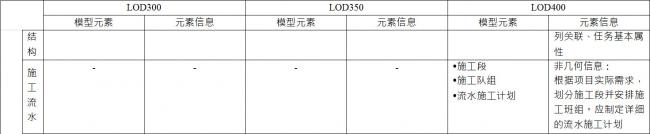 BIM施工模型细度表关于施工进度管理中结构和施工流水的说明