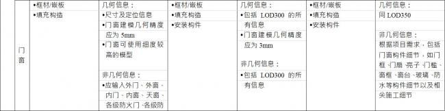 BIM施工模型细度表关于门窗的说明