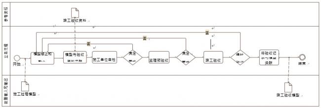 1.在竣工验收 BIM 应用中,施工单位应在施工过程模型基础上进行模型补充和完善, 预验收合格后应将工程预验收形成的验收资料与模型进行关联,竣工验收合格后应将竣工验 收形成的验收资料与模型关联,形成竣工验收模型(如下图)。
