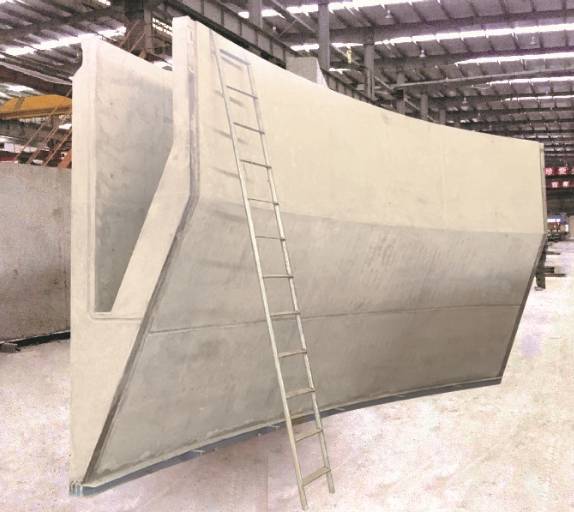 4)将筒体拆分为双皮空腔结构预制,每块构件边缘预埋钢板,拼装时连续焊接,形成封闭接缝,预制块拼接成环叠加层后“错层浇筑内腔自密实砼”,是最核心的结构防水设计。