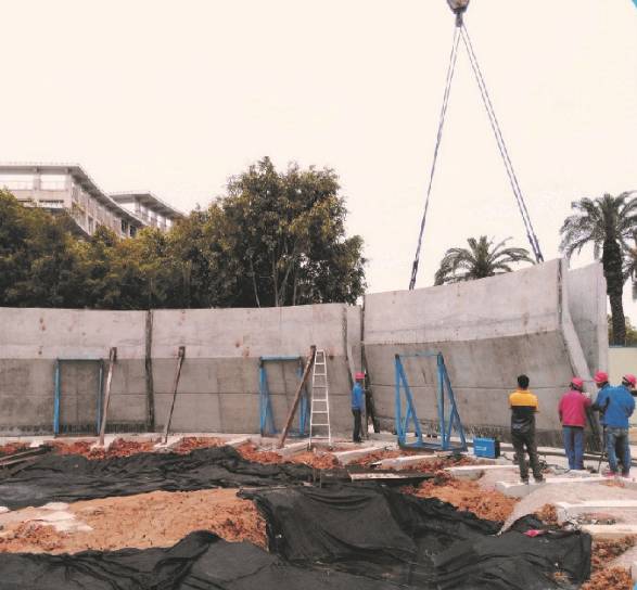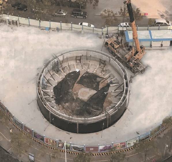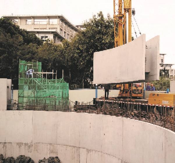 车库库体采用预制装配式技术结合沉井下沉技术完成建设,主体施工工期5个月,目前已完工。