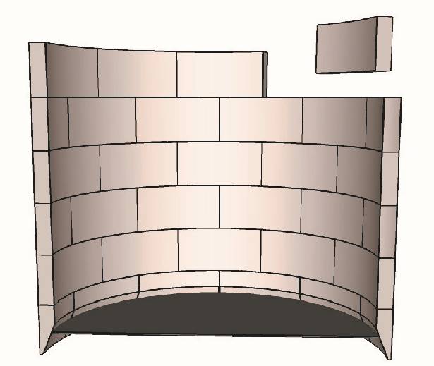 3)吊装标准块与已安装的井筒顶部拼接,并将相邻标准块依次拼接,构成井筒上一层。拼装时不仅要保证井筒的垂直度及块体稳定性,还要注意不使相邻层的竖向拼缝在同一竖向线内。