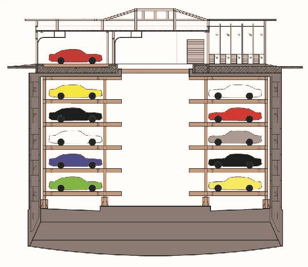 车库选择在老旧小区、绿地地下建设,占地小,对环境影响小,为缓解城市“停车难”问题,开辟一个新的解决途径。