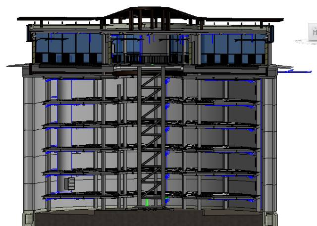 本项目体量小,但五脏俱全,在过程中通过采用BIM技术,对构件拼装、各专业施工碰撞问题及时调整校正,并模拟各种规格车辆的使用过程,对停车失误核查。尤其在拼装设计、钢结构与设备结构匹配设计、材料采购、成本管控、使用功能复核、建设工期把控等各方面均发挥作用。