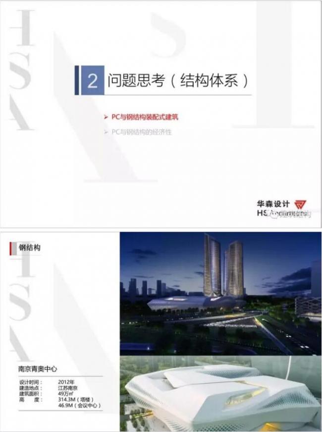 2)以钢结构项目南京青奥中心为例,进行了半装配式到全装配式的思考,并对昆明大成金融商务中心项目的结构体系进行装配式住宅方案比选,全面总结比较了PC结构与钢结构装配式建筑的经济性,指出建筑高度超过120mm钢结构装配式结构的综合性价比越有优势;