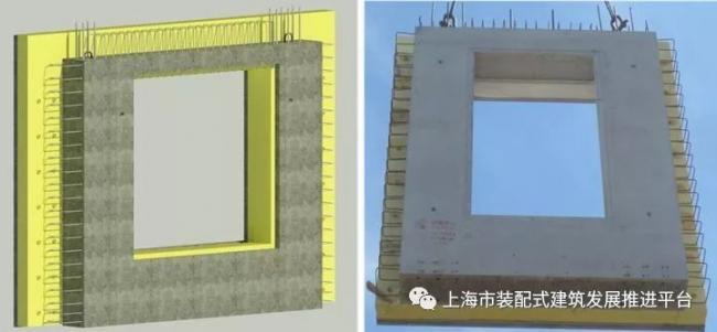 一体化的预制夹心墙板集成了结构、外饰面、保温、节能副框、以及外遮阳构件等,解决了门窗、墙体渗水,外保温、外饰面砖脱离等建筑质量通病,实现外墙保温与结构同等寿命。