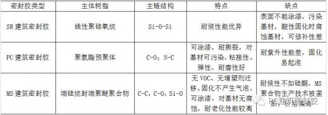 MS建筑密封胶起源于日本,首先开发的为双组分配方产品,其市场应用已相当成熟,相应施工工艺和性能也得到业界认同。双组分MS建筑密封胶是以MS聚合物的基体树脂配合以填料、增塑剂、催化剂等混合而成,由于耐老化性能好,广泛用于PC外墙施工缝的密封防水,但双组分MS建筑密封胶与混凝土基材粘结性极差,必须采用MS建筑底涂强化粘接基面,且施胶前需要预先混合,再用胶枪抽取后施工,操作不便。随着研究的不断深入,单组分MS建筑密封胶应运而生,其主要性能不但可与双组分MS建筑密封胶媲美,而且可直接施工,对设备要求较低,操作方便。