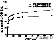 PC构件施工缝属于典型的干缩缝,随着时间的延长,混凝土尺寸会发生收缩变化,施工缝相对缝宽会逐年增加,密封胶对粘接界面的拉伸强度增加。图2是MS建筑密封胶60%定伸应力变化与时间的依赖性。可以看出,在定伸宽度为60 %条件下,24h后单组分MS建筑密封胶应力变化率为68.11 %,较双组分MS建筑密封胶(54.55 %)提高了24.86。具有比双组分MS建筑密封胶更好的应力缓和性,对粘接界面的拉伸强度衰减速率比双组分MS建筑密封胶明显要快,更能保证粘接状况,不易出现粘接界面破坏而导致漏水。
