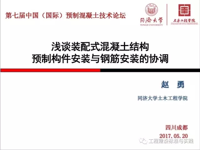 2017年5月19日,第七届中国(国际)预制混凝土技术论坛上,全国建筑工业化联盟技术委员会委员联盟技术委员会委员、中国混凝土与水泥制品协会预制混凝土构件分会副秘书装配式房屋长、同济大学副教授赵勇作了《浅谈装配式混凝土结构预制构件安装与钢筋安装的协调》主题报告,现将报告全文转发如下。