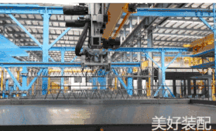 另外,与国产线采用人工绑扎、置筋不同,美好装配江夏生产基地采用全自动钢筋生产线,钢筋网片制作、桁架制作、弯折和铺设,均可一次性完成。